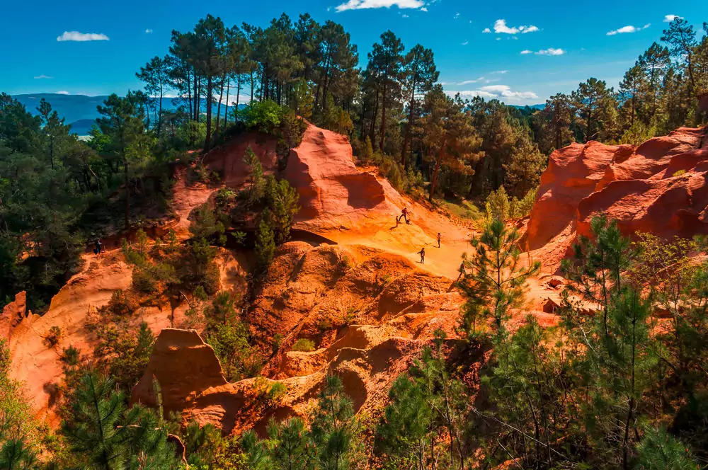 … lassen uns die Provence von einer anderen Seite erleben: Wir besichtigen die Quelle Fontaine-de-Vaucluse mit ihren weißen Karstfelsen. Ockerfarben präsentiert sich dagegen Roussillon. Kein Wunder, denn hier befinden sich die berühmten Ockerfelsen, wo schon die Römer die rötlich-braunen Pigmente abbauten. Ein Spaziergang lässt uns in diese bizarre Landschaft eintauchen.
