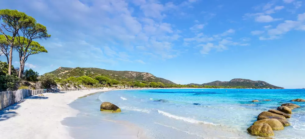 Erholung pur! Genießen wir den Pool oder das Meer: weißer Sand und türkisblaues, klares Wasser und als Kulisse die korsische Gebirgswelt. Hier lassen wir einfach mal die Seele baumeln.