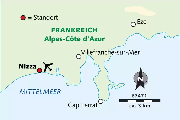Flug nach Nizza und kurzer Transfer ins Hotel. Nach der Begrüßung durch unsere Reiseleitung lassen wir das erste Côte-d’Azur-Lebensgefühl auf uns wirken.