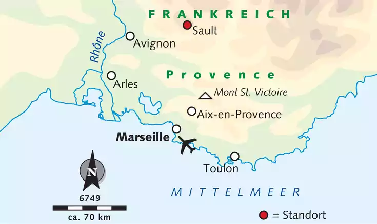 Flug nach Marseille. Transfer nach Sault zum Hotel. Je nach Ankunftszeit ist ein gemeinsamer Orientierungsspaziergang mit der Reiseleitung durch den Ort möglich.