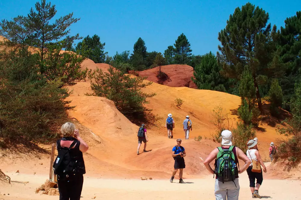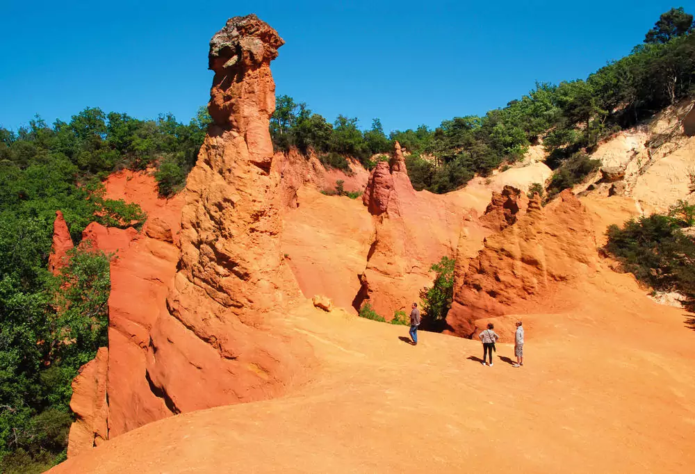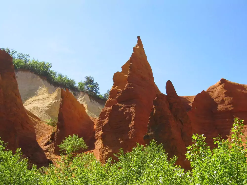 Ein Reich der Farben, ein Wunder der Natur, kein Künstler hätte es schöner malen können: Wir wandern durch den Colorado von Rustrel, tauchen ein in eine Welt aus bizarren Felsformationen, die uns rot, gelb, ockerfarben und golden entgegenleuchten (GZ: 2 Std., +/- 100 m). Anschließend bietet sich ein Abstecher nach Roussillon an. Eingerahmt von roten Felsen, ist der kleine, pittoreske Ort als "Ockerdorf" berühmt geworden.