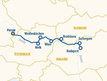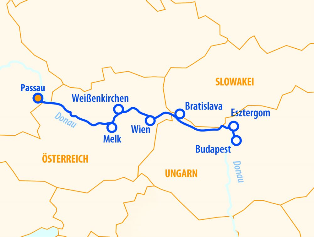 Während die weihnachtlich beleuchteten Städte entlang der Donau an uns vorbeiziehen, setzen wir unsere Fahrt in Richtung Bratislava fort. In Bratislava angekommen, haben wir am nächsten Morgen Zeit, die malerische Altstadt und die imposante Burg zu erkunden. Nach einer optionalen Stadtbesichtigung in der ungarischen Hauptstadt legen wir ab und fahren stromaufwärts in Richtung Weißenkirchen/Dürnstein, wo wir einen kurzen Halt einlegen. Hier bietet sich die Gelegenheit die bezaubernde Wachau zu entdecken und durch die schmalen winterlichen Gassen dieses berühmten Weinanbaugebiets zu schlendern. Im Anschluss genießen wir die letzten idyllischen Eindrücke der Donau bevor in Passau unsere Reise zu Ende geht.