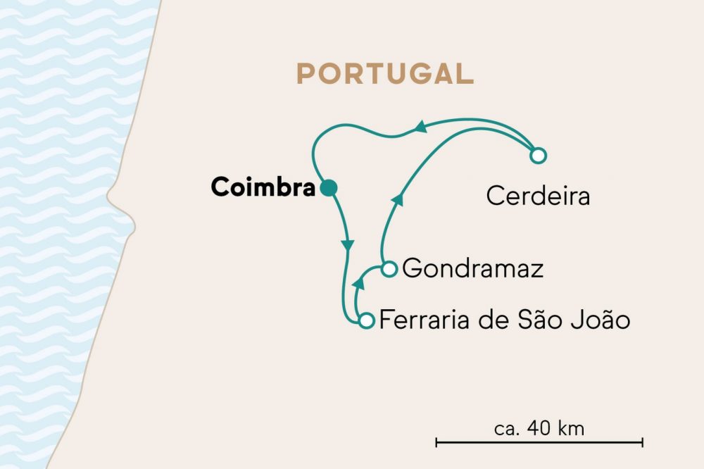 Transfer von Lousã nach Coimbra an Tag 7