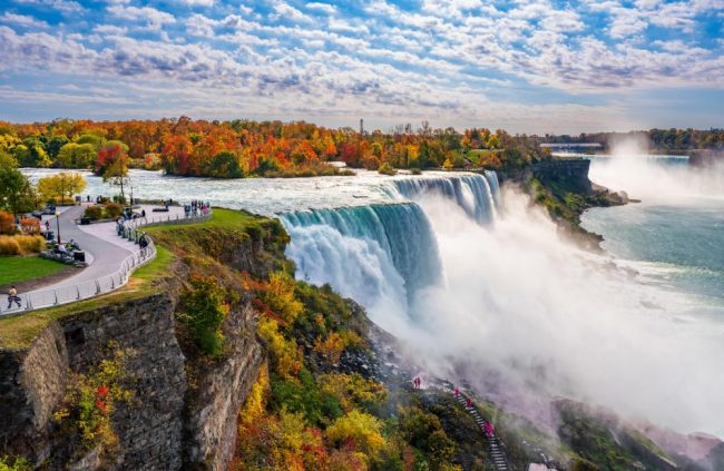 Besuch der Niagarafälle auf der kanadischen Seite. Zeit für eine optionale Bootstour (vor Ort buchbar). Übernachtung in der kanadischen Stadt Niagara Falls.