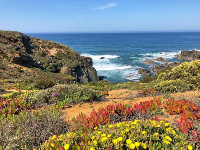 Radtour entlang der Costa Vicentina mit hohen Klippen, Stränden, kleinen Häfen und Fischerdörfern. Ziel ist die Küstenstadt Vila Nova de Milfontes mit Sandstrand und lebendigem Ortskern.