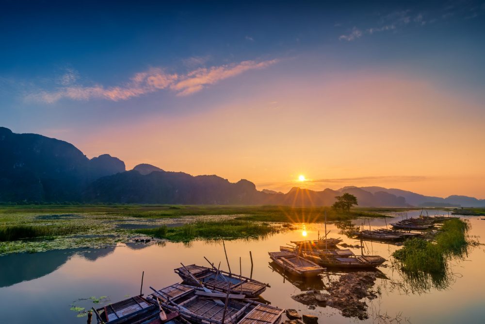 Fahrt nach Ninh Binh mit Besuch der alten Zitadelle von Hoa Lu mit Relikten aus der Dinh- und Le-Dynastie. Bootstour zu den Grotten von Tam Coc, umgeben von Karstformationen.