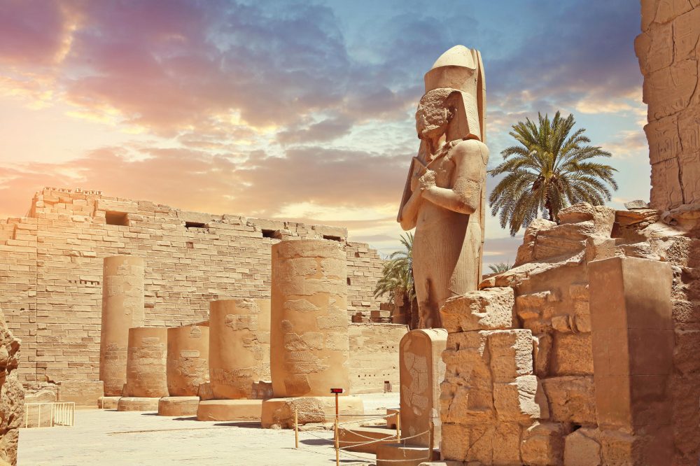 Nach dem Frühstück Fahrt durch die steinigen Weiten der Sahara nach Luxor, wo sich die Landschaft am fruchtbaren Nilufer verändert. Einschiffung auf das Nilkreuzfahrtschiff. Am Nachmittag Besuch des Ostufer-Tempels von Karnak, wahlweise auf eigene Faust oder im Rahmen eines vor Ort buchbaren Ausflugspakets mit Reiseleitung.