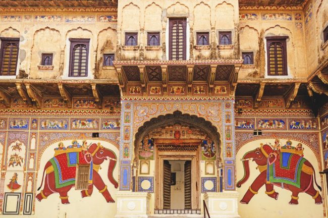 Fahrt nach Mandawa. Besuch traditioneller Havelis. Kutschfahrt mit Kamelen und Sonnenuntergangserlebnis mit Tee oder Kaffee. Abendessen und Übernachtung in Mandawa.