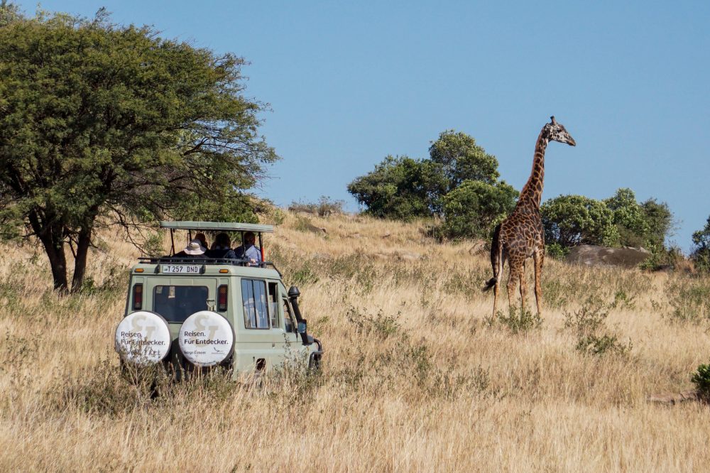 Ganztägige Safari im Serengeti Nationalpark mit Pirschfahrten am Vormittag und Nachmittag. Die Serengeti beheimatet die höchste Dichte an Raubtieren weltweit, darunter Löwen, Leoparden, Geparden und Hyänen. Je nach Jahreszeit wechseln sich grüne Landschaften voller Wildblumen mit goldgelben Savannen ab.