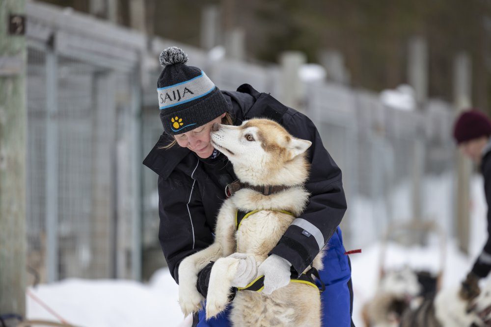 Gleich nach dem Frühstück gehen wir auf Entdeckertour rund um die Saija Lodge. Die unberührte Natur von Koillismaa präsentiert atemberaubende Ausblicke auf die Seenlandschaft des Jokijärvi und wartet nur darauf, von uns erkundet zu werden. Wir erfahren, was wir die nächsten Tage mit den Huskys unternehmen werden und kleiden uns mit der passenden "Safari-Ausrüstung" ein. Die Vorfreude auf die kommenden Tage steigt! Endlich lernen wir auch unsere Mitbewohner kennen: Aufgeregt heulend erwarten uns die Vierbeiner in ihren Hundehütten, bereit für gemeinsame Abenteuer in der finnischen Wildnis. Wir machen uns mit den Tieren vertraut und nehmen die Eindrücke in uns auf. Wer mag, kann gerne mit einem der Hunde spazieren gehen vor dem Abendessen.