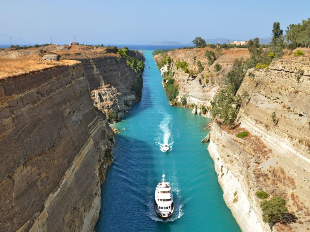 - Beeindruckende Überquerung des Kanals von Korinth, ein technisches Meisterwerk, das die Peloponnes-Halbinsel vom Festland trennt.
